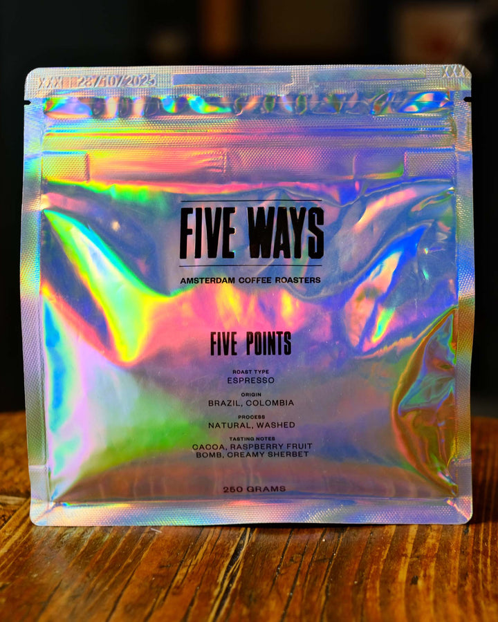 The Five Points blend has undergone a development process spanning nearly half a decade. The outcome is an exceptional raspberry fruit-dominated composition, complemented by a pleasant milk chocolate sweetness that counterbalances the fruit like acidity, resulting in a harmonious blend.