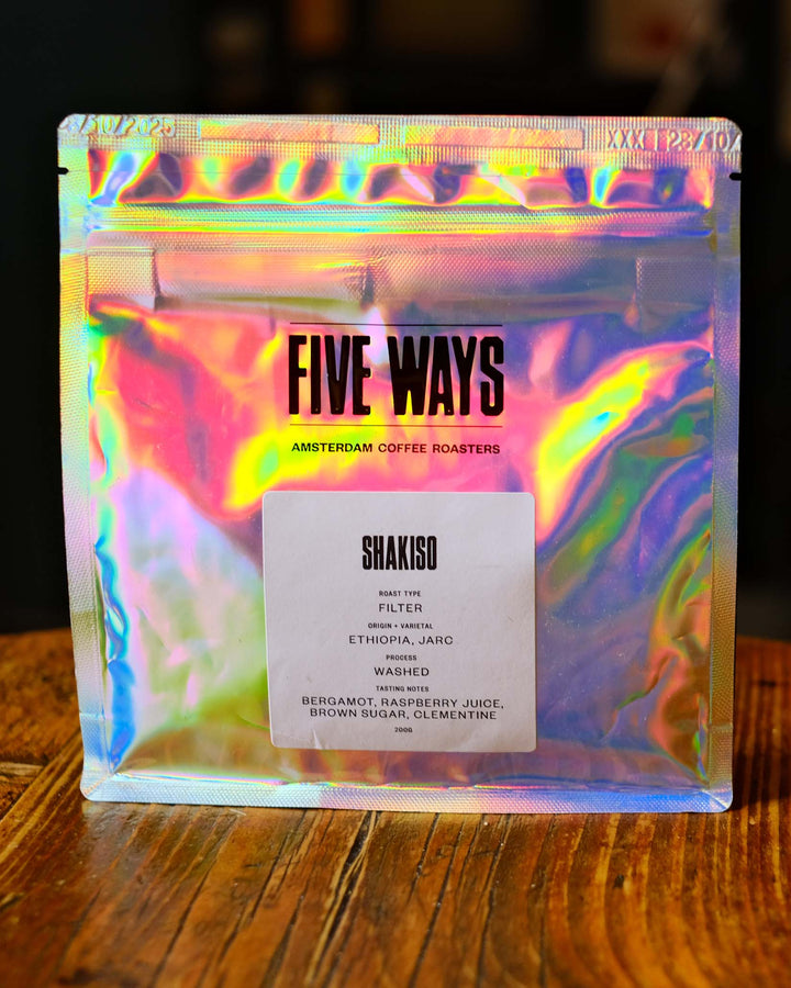 From Ethiopia’s Guji Zone, this lot comes from the Hadeso washing station in Shakiso, grown by 500 smallholder farmers at 1,850–2,100 m under native shade trees. Expect bright citrus notes and juicy red fruit in every cup.