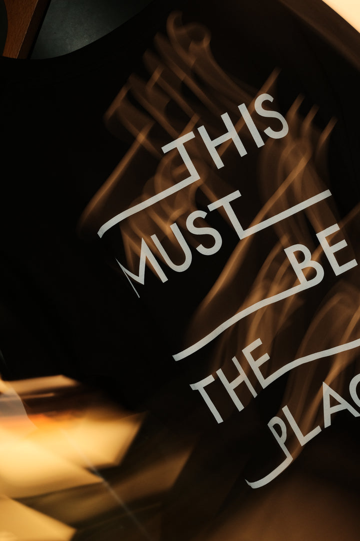 Originally intended just for foureighty™ team members the “This Must Be The Place” tee is a bold graphic statement from the foureighty™ studio. Demand from you lot was so high that we gave in and decided to put it up for grabs. Cut in jet-black cotton with a clean chest logo at the front, the back artwork shouts our mantra in striking block print. Built for those who know their spot — in coffee, in culture, in community.